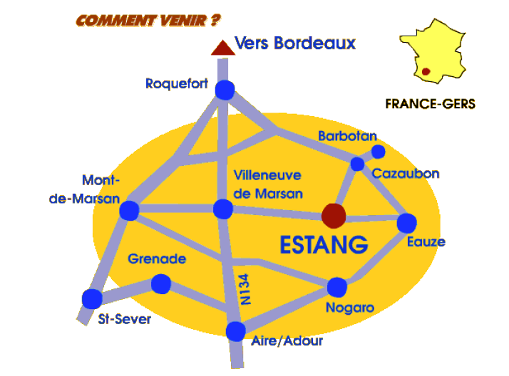 • À 60 mn de Pau N124 jusqu'à Aire/Adour N134 jusqu'à Pau